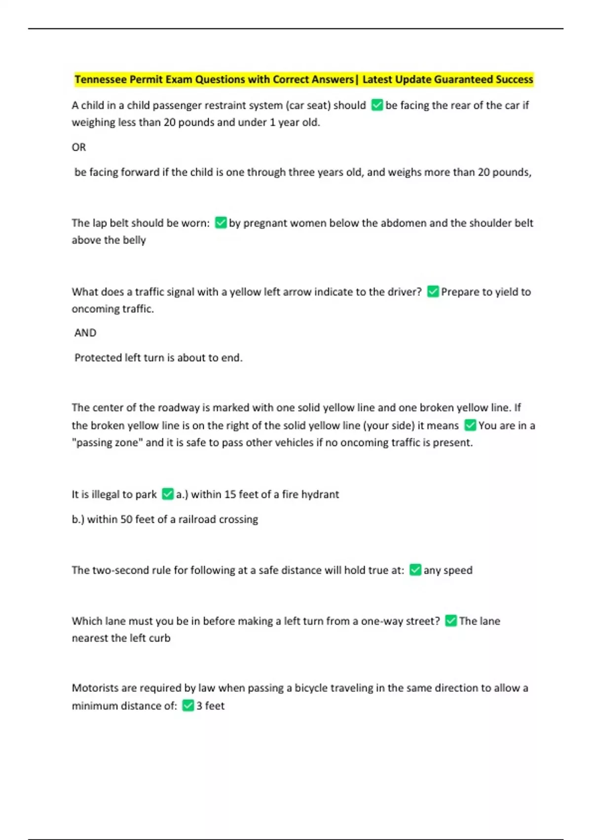 Tennessee Permit Exam Questions with Correct Answers| Latest Update Guaranteed Success