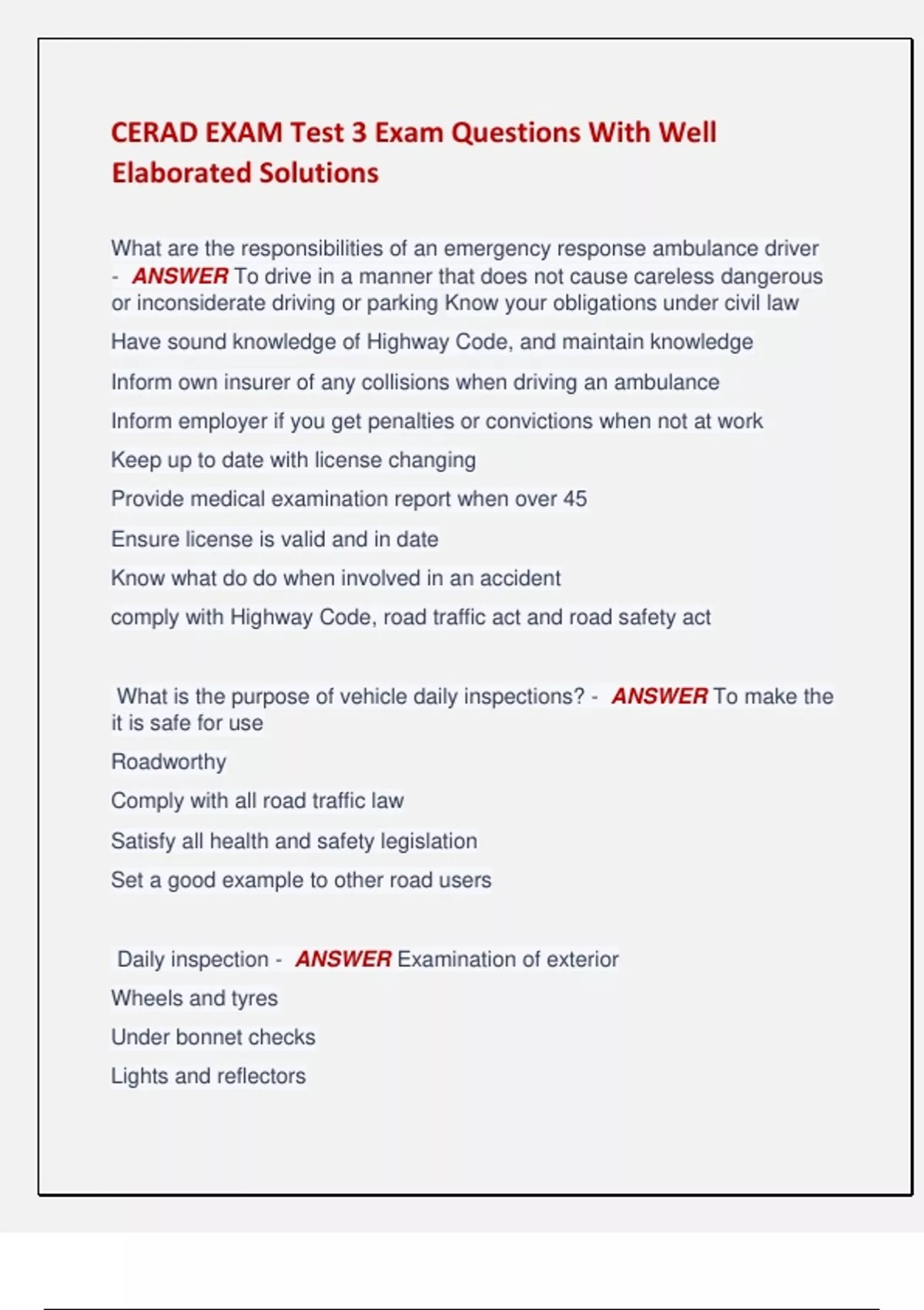 Why perform a pre driving check - ANSWER Ensures you are familiar with