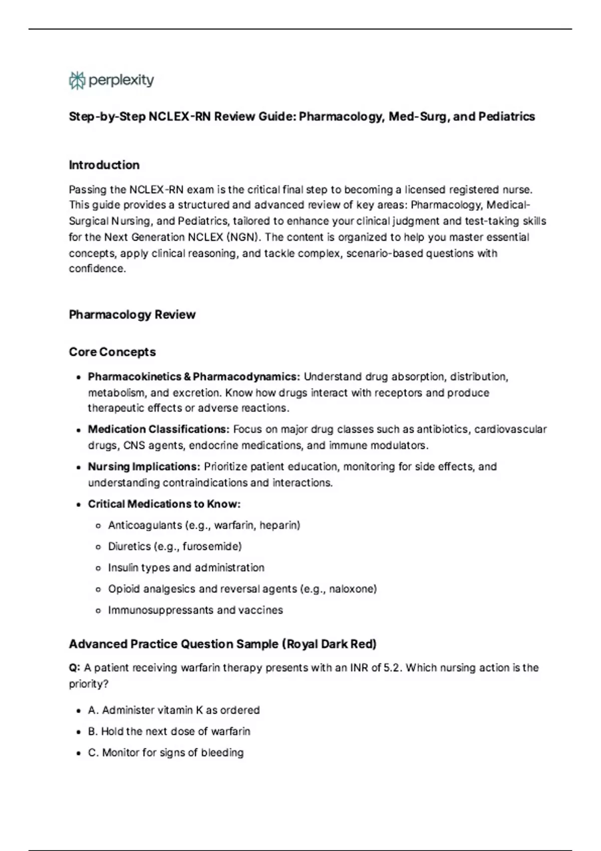 This guide provides a structured and advanced review of key areas: Pharmacology, Medical-