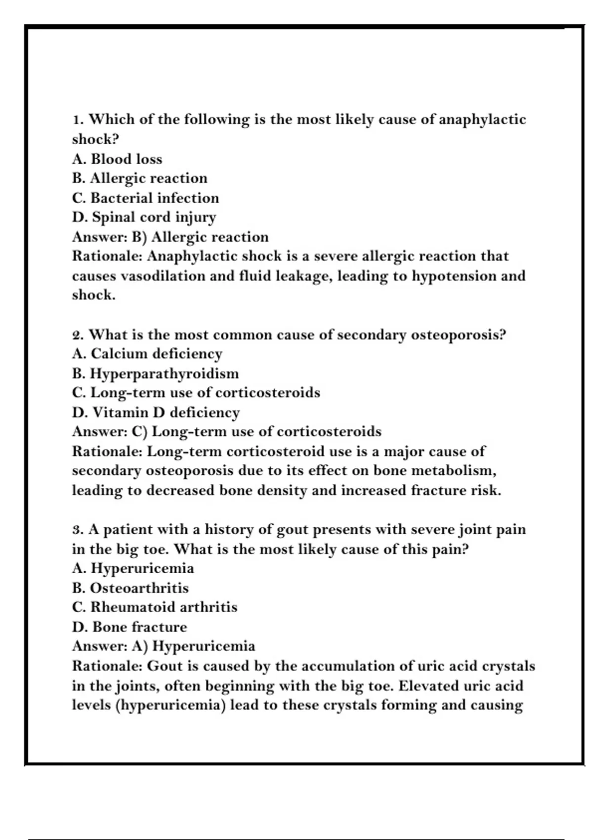 3. A patient with a history of gout presents with severe joint pain