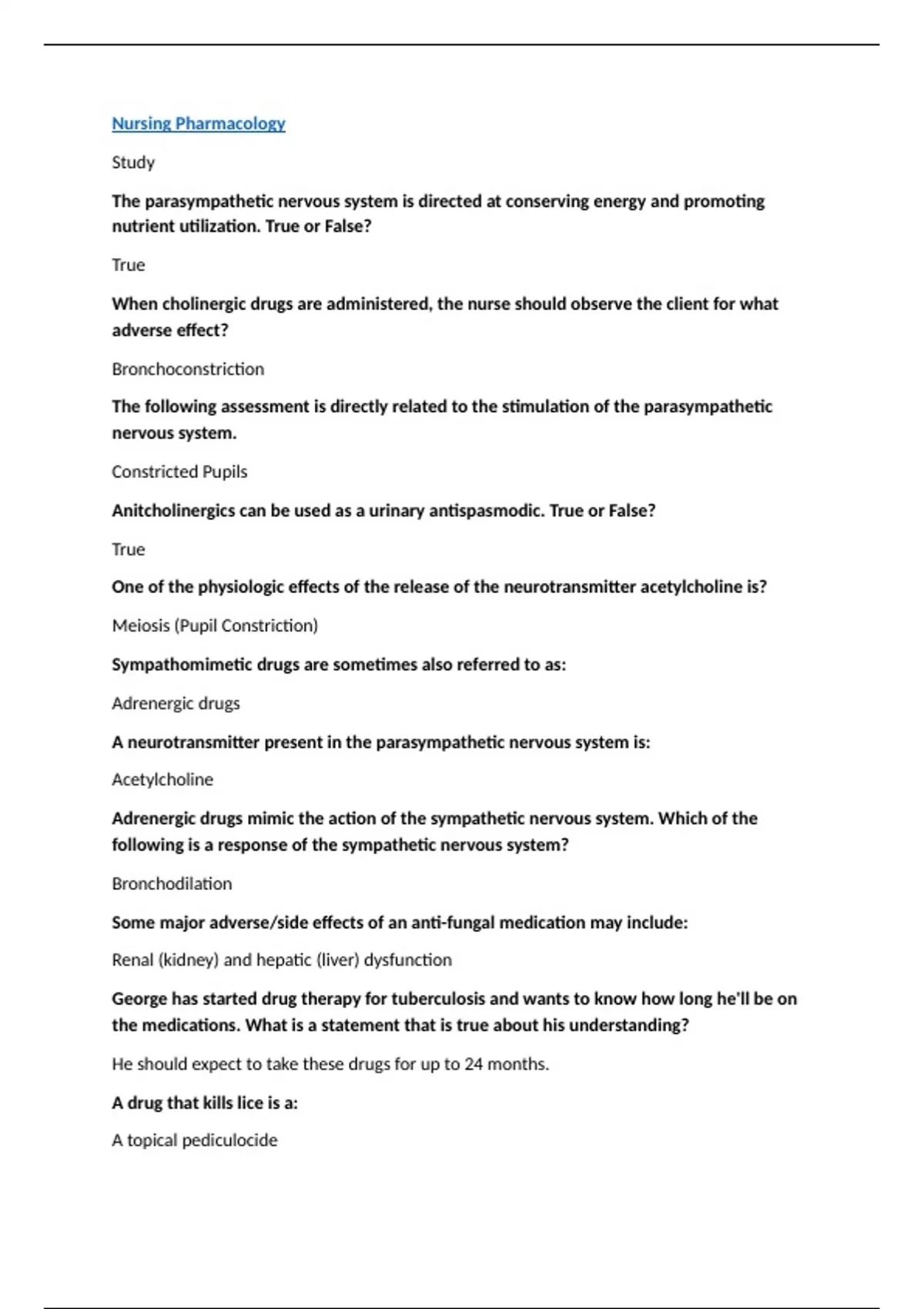 Nursing Pharmacology