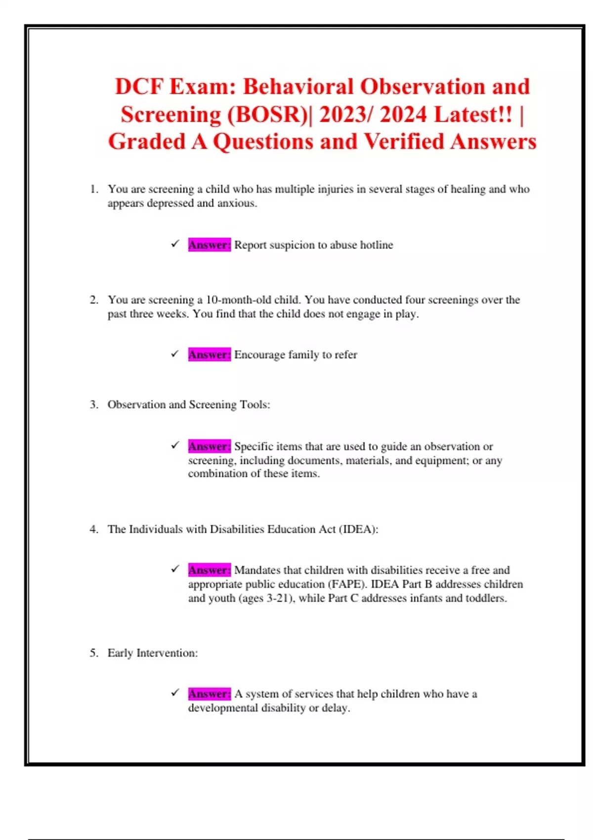 1. You are screening a child who has multiple injuries in several stages of healing and who