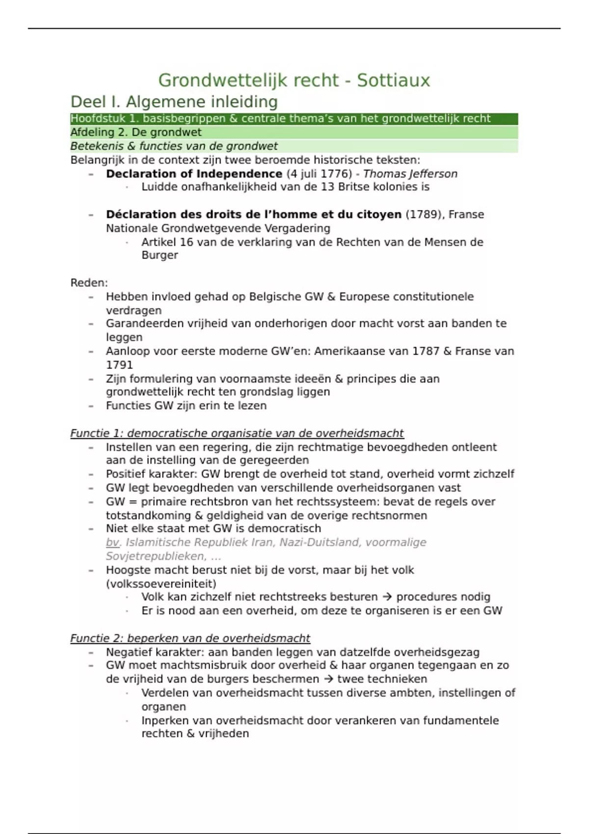 Deze samenvatting van grondwettelijk recht behandelt het deel van Sottiaux. Deze samenvatting is volledig zelf gemaakt op basis van de lesnotities, de powerpoint en het handboek.