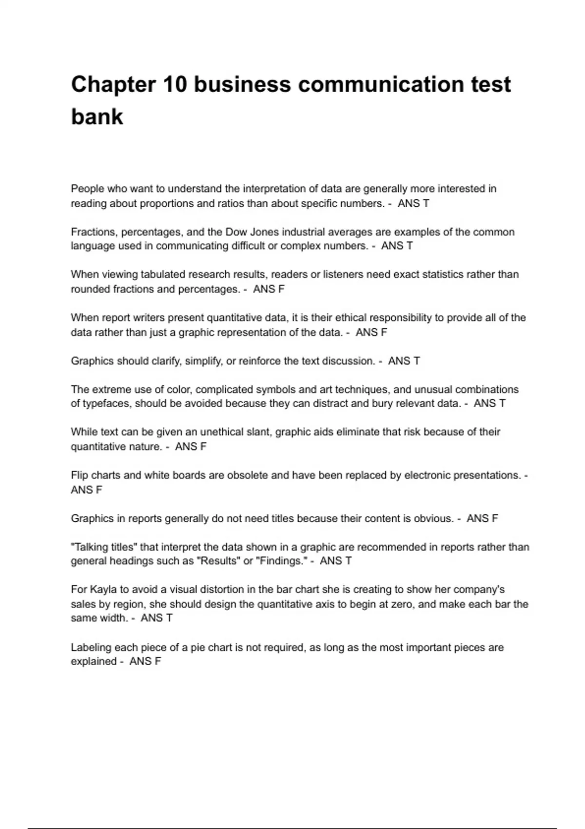 Test Bank -Business Analytics & communication (Numbers included) 2nd Edition Questions and Answers Newest Update (A+ GRADED) Guaranteed Pass