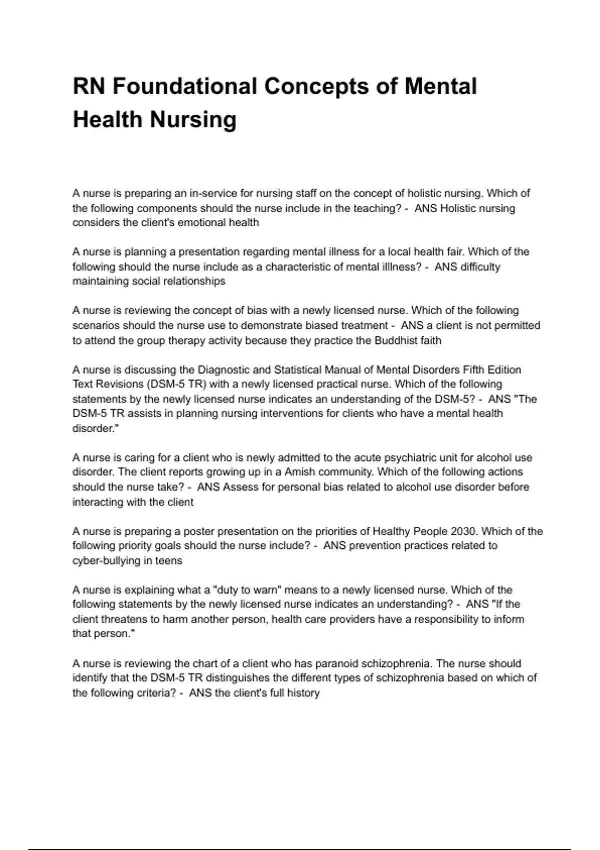RN Foundational Concepts of Mental
