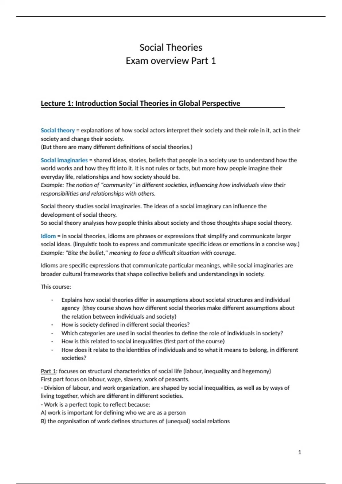 Part 1: focuses on structural characteristics of social life (labour, inequality and hegemony)