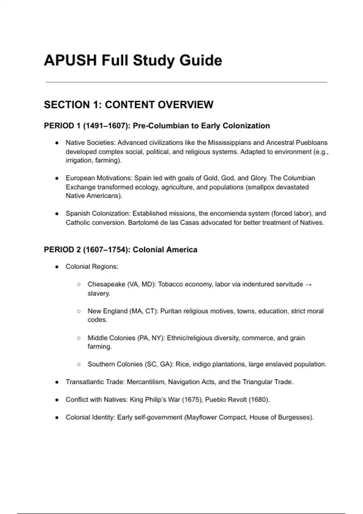 PERIOD 1 (1491–1607): Pre-Columbian to Early Colonization
