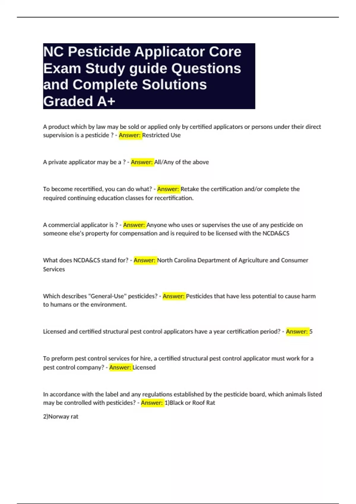 What does NCDA&CS stand for? - Answer: North Carolina Department of Agriculture and Consumer