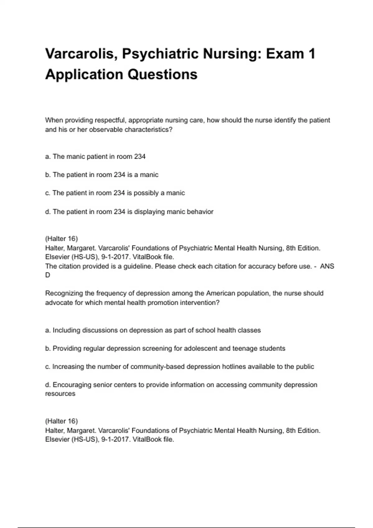 Halter, Margaret. Varcarolis' Foundations of Psychiatric Mental Health Nursing, 8th Edition.