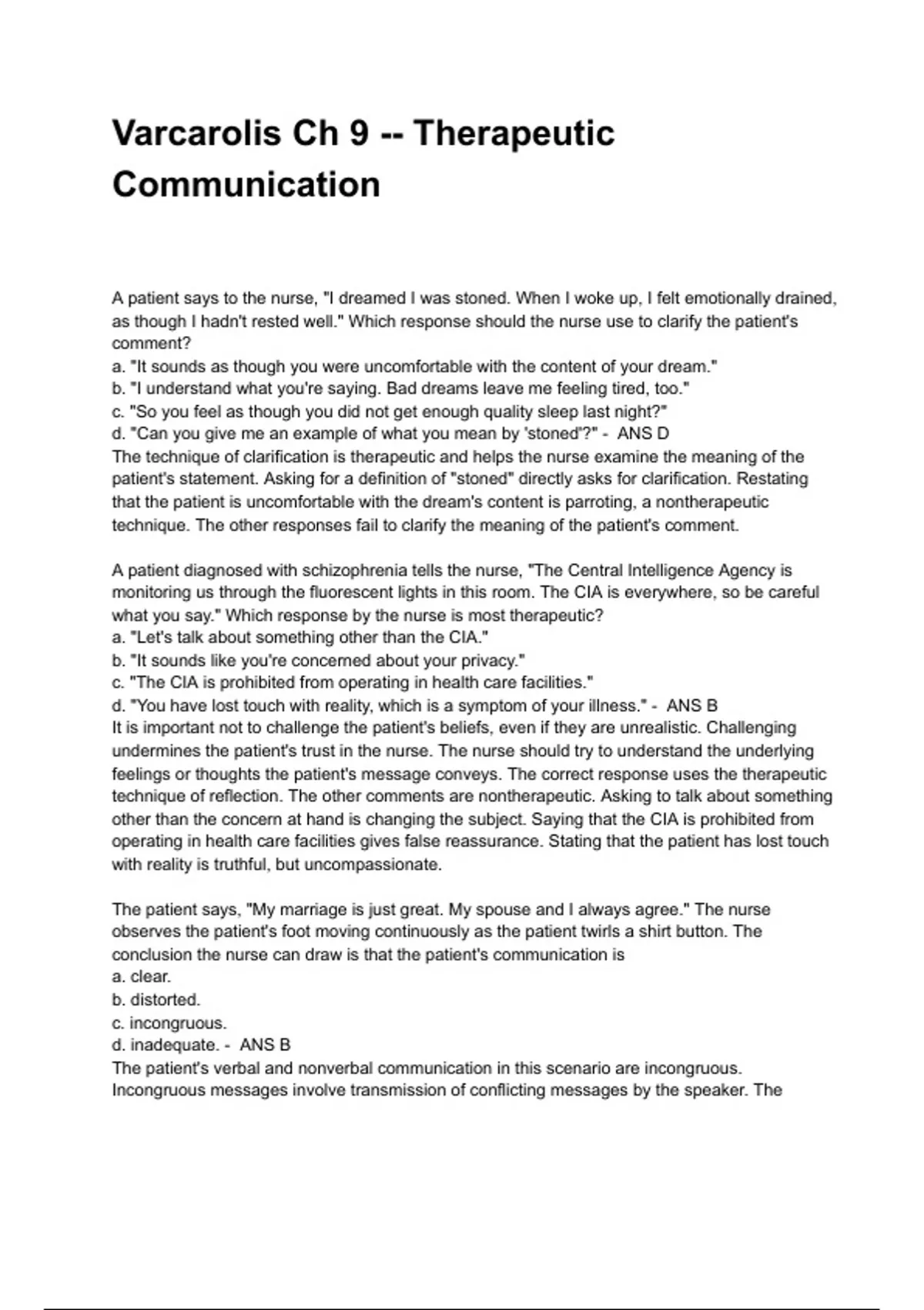 that the nurse cares about the patient. Two incorrect responses are ineffective and