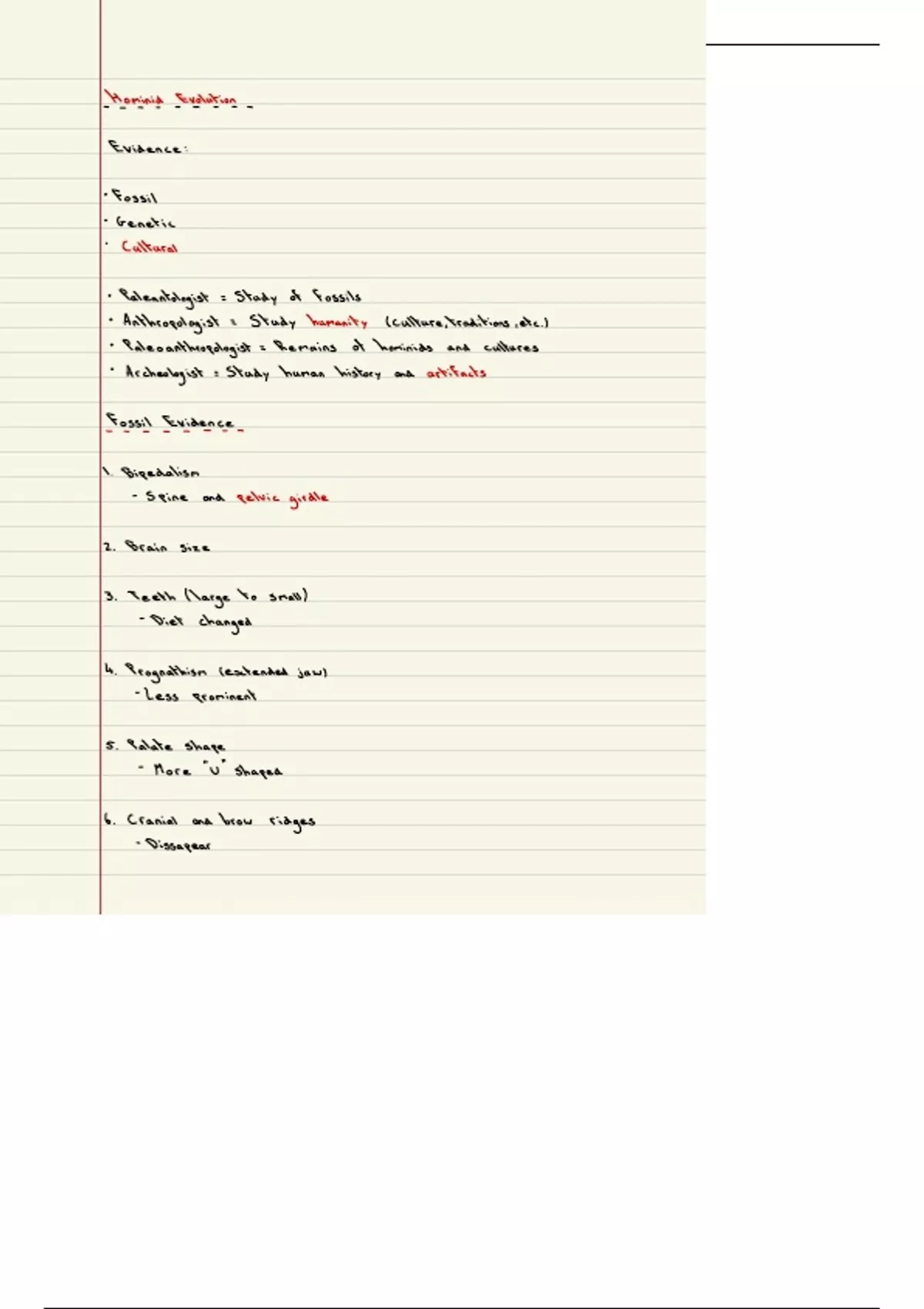Summary Hominid Evolution Notes