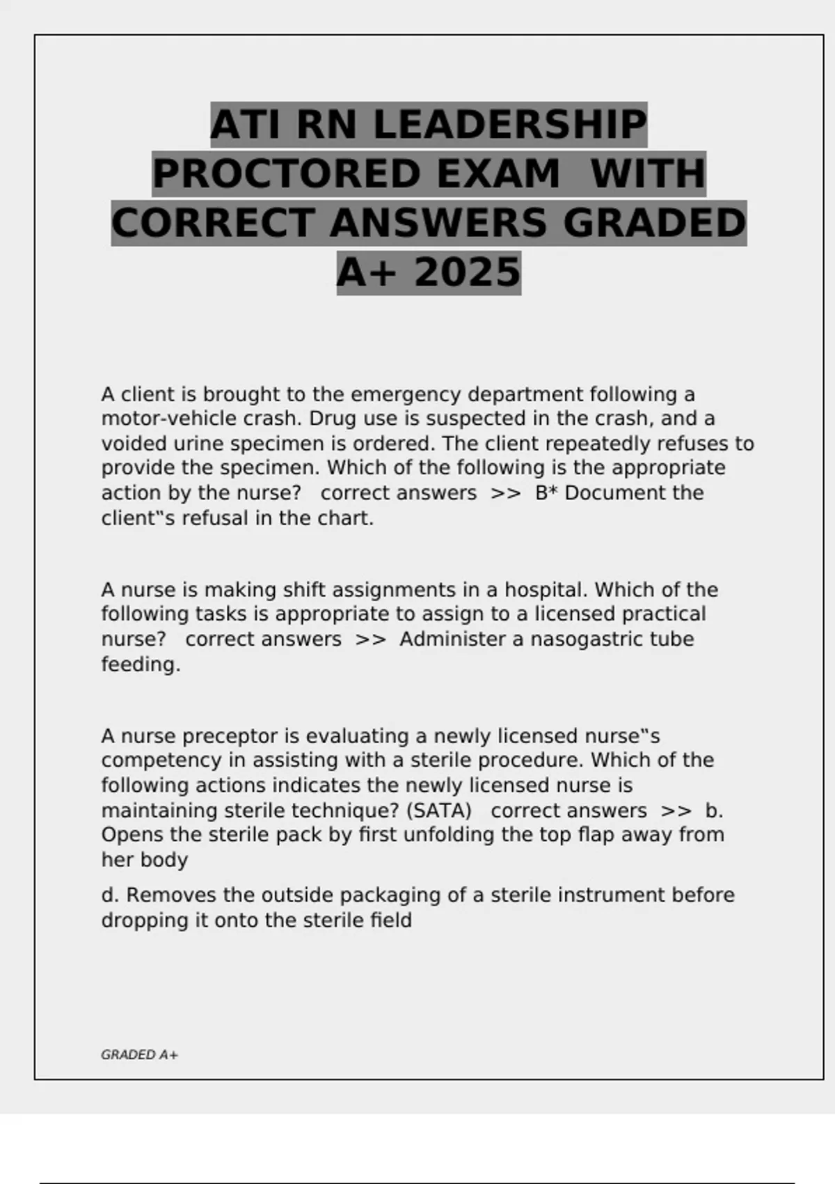 CORRECT ANSWERS GRADED