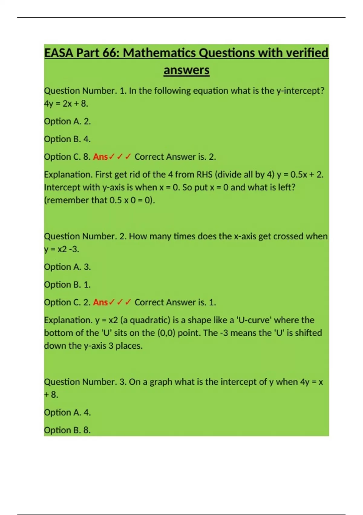 Question Number. 3. On a graph what is the intercept of y when 4y = x