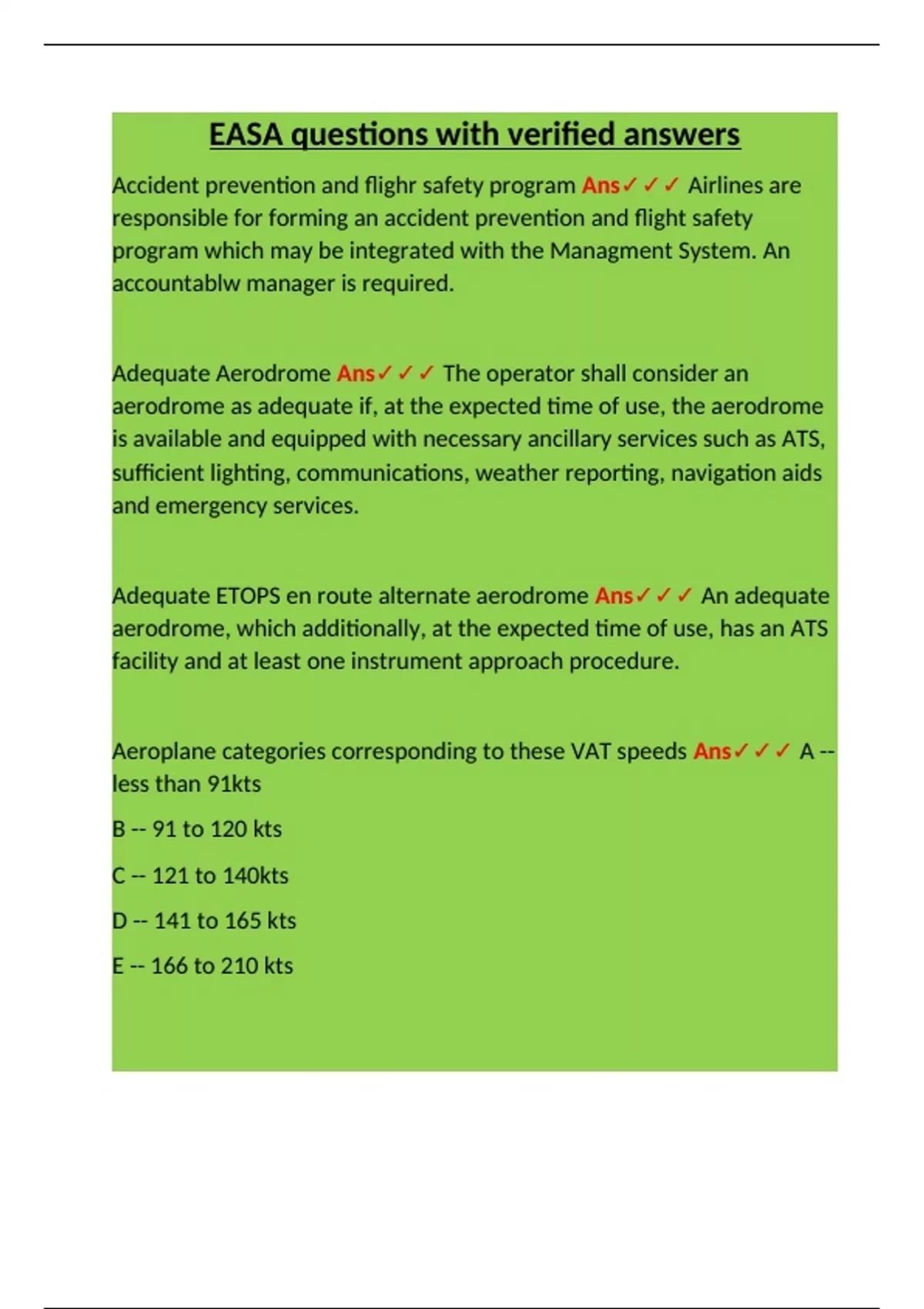 Aeroplane categories corresponding to these VAT speeds Ans✓✓✓ A --