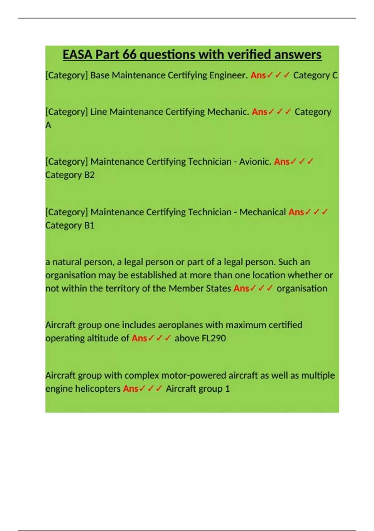 EASA aircraft maintenance license categories Ans✓✓✓ • Category A -