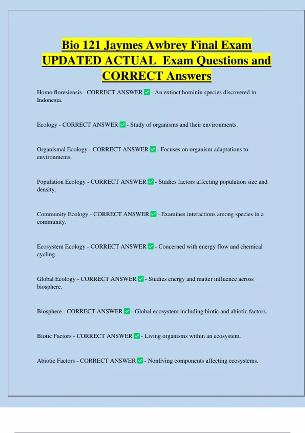 CORRECT Answers