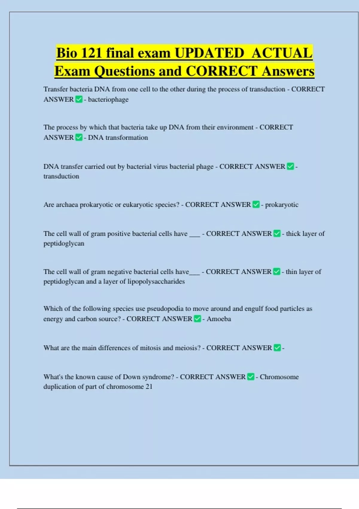 Exam Questions and CORRECT Answers