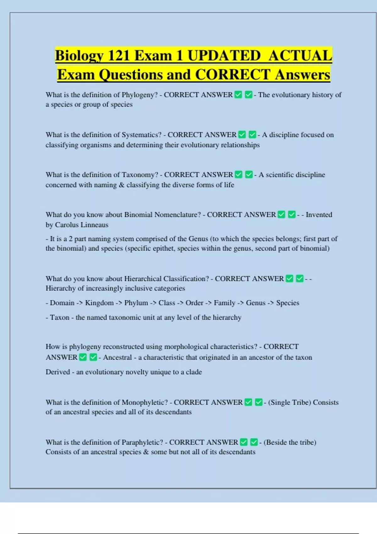 Exam Questions and CORRECT Answers