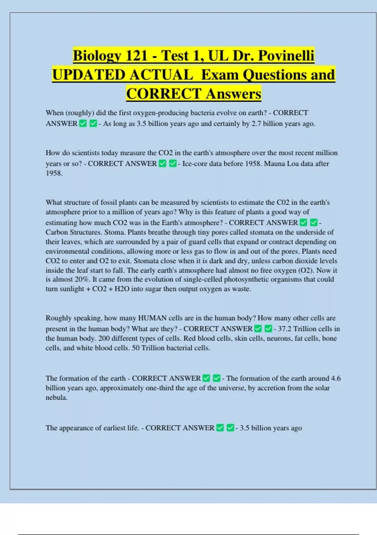 When (roughly) did the first oxygen-producing bacteria evolve on earth? - CORRECT