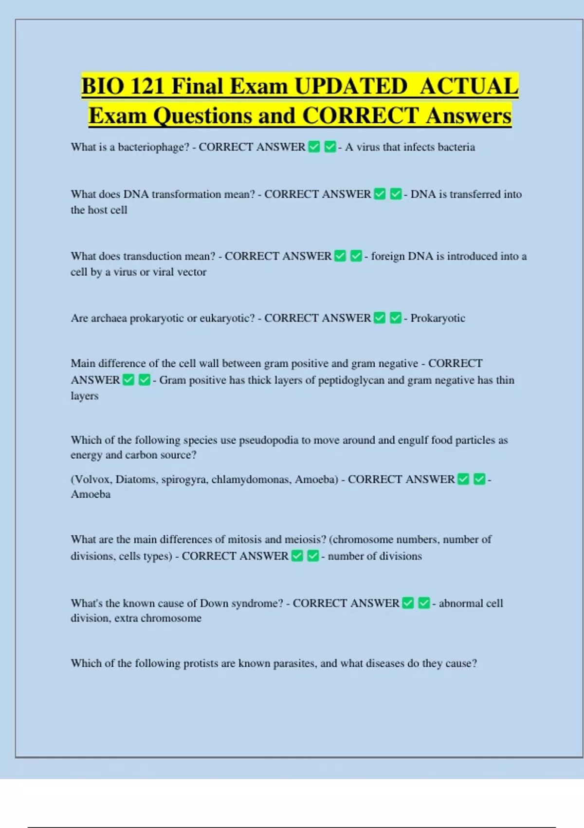 Exam Questions and CORRECT Answers