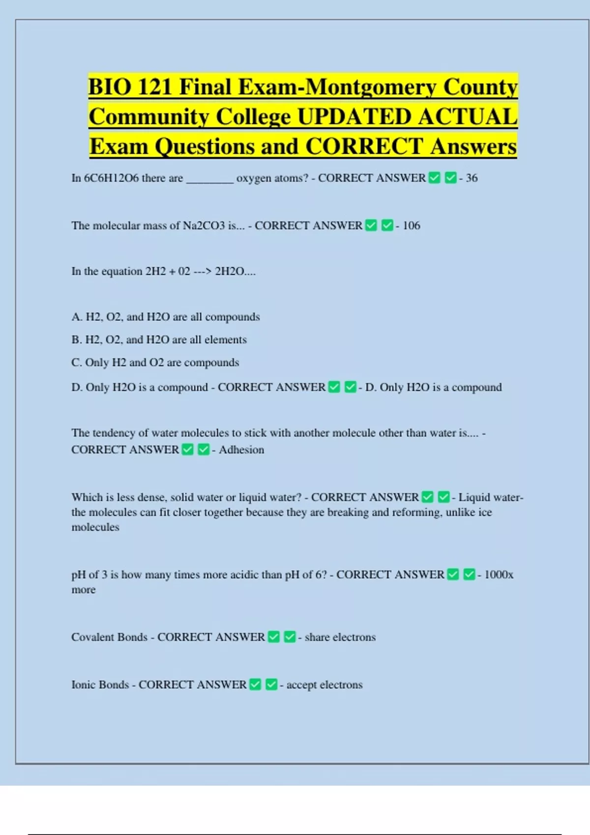 Exam Questions and CORRECT Answers