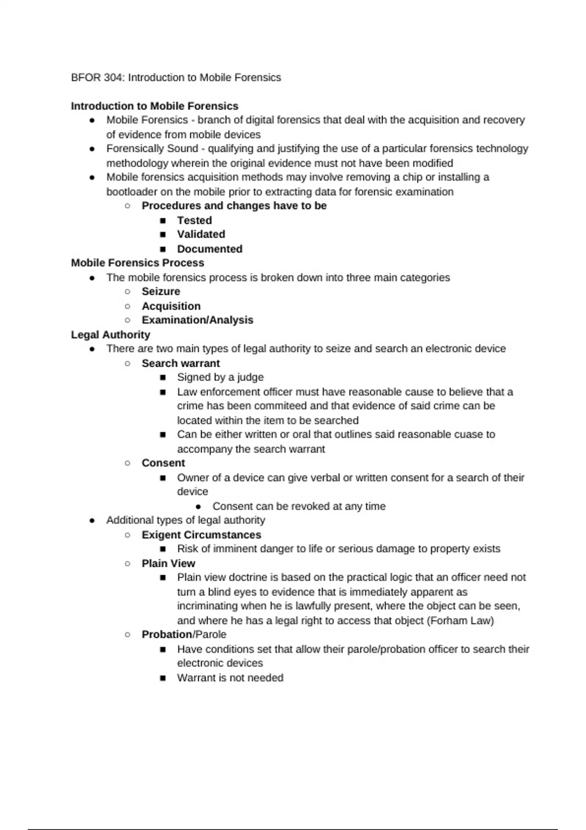 BFOR 304: Introduction to Mobile Forensics