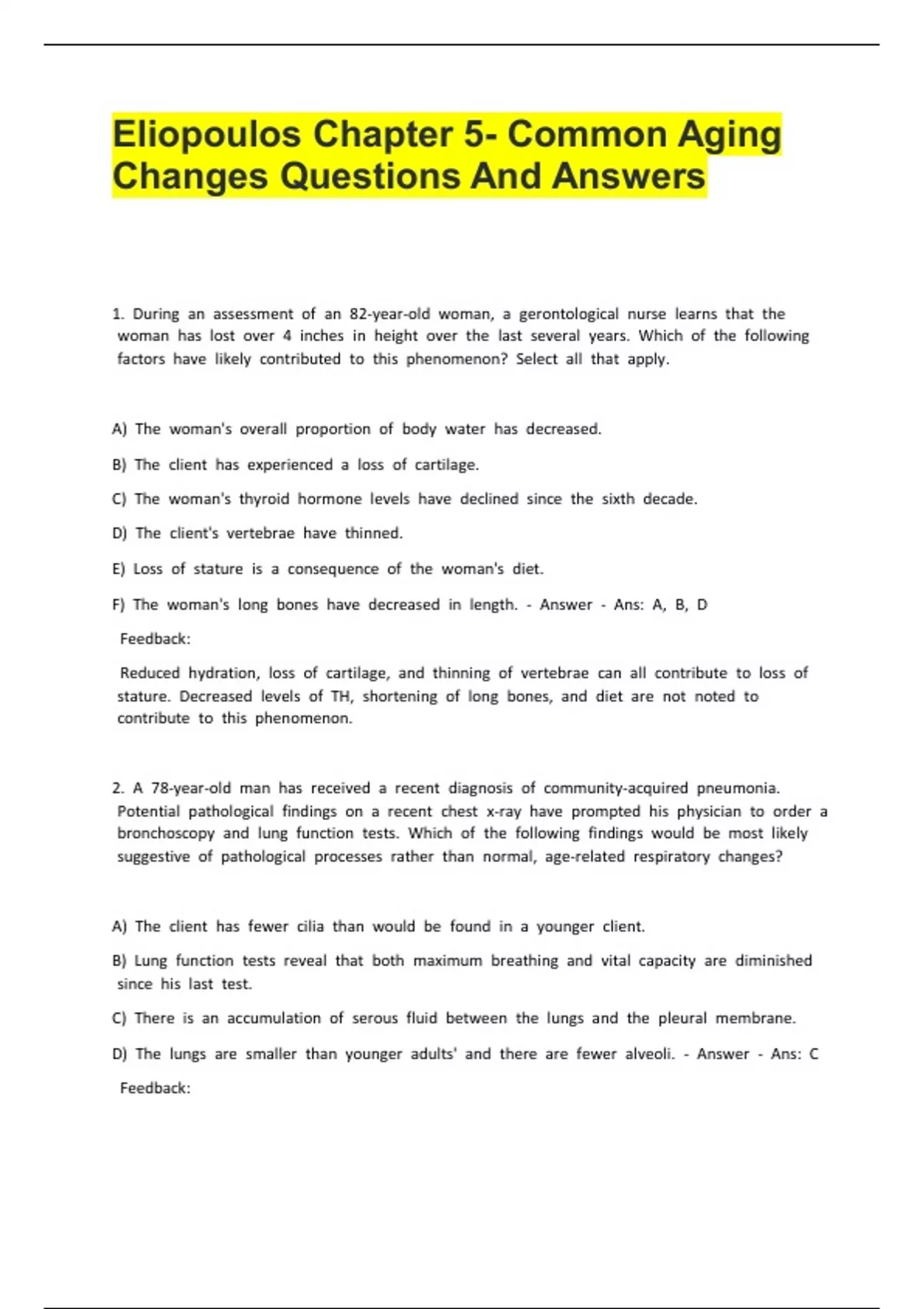 Eliopoulos Chapter 5- Common Aging Changes Questions And AnswersEliopoulos Chapter 5- Common Aging Changes Questions And AnswersEliopoulos Chapter 5- Common Aging Changes Questions And AnswersEliopoulos Chapter 5- Common Aging Changes Questions And AnswersEliopoulos Chapter 5- Common Aging Changes Questions And Answers