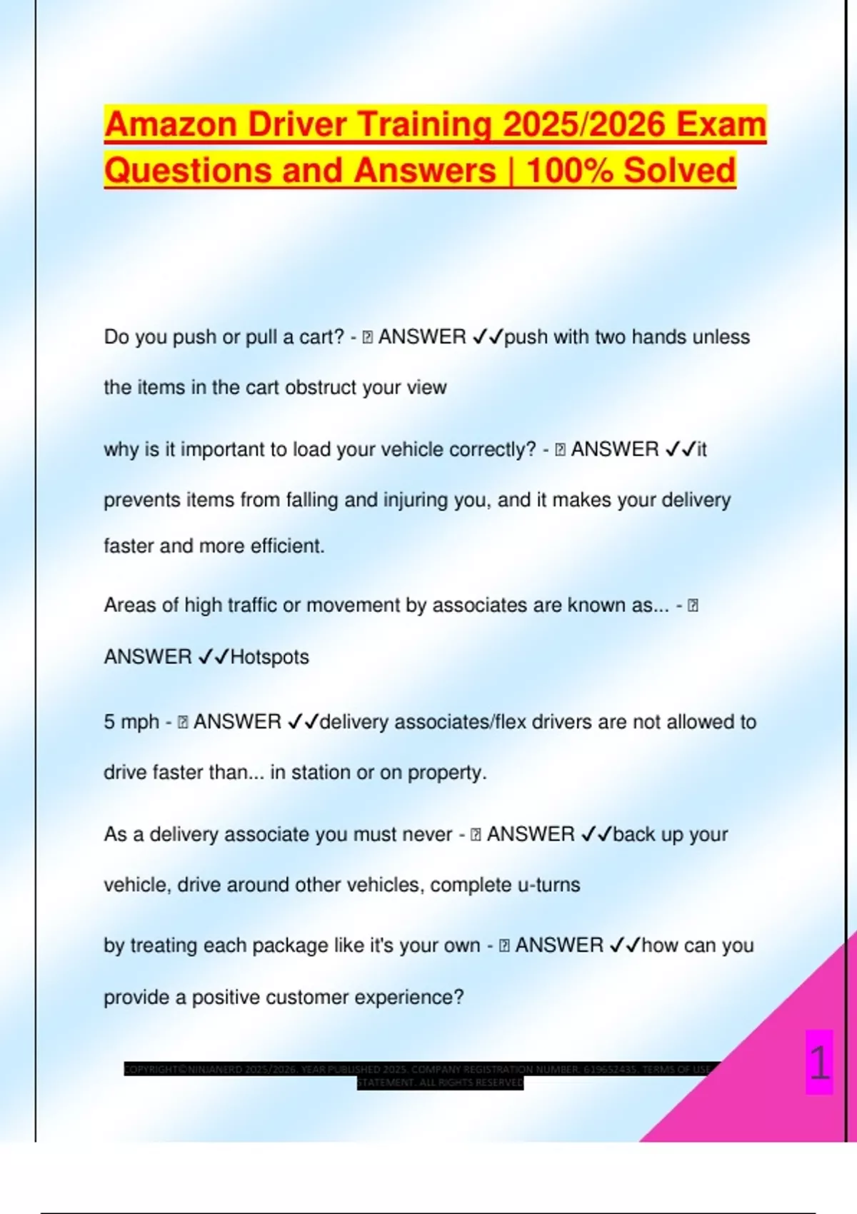 Amazon Driver Training 2025/2026 Exam Questions and Answers | 100% Solved