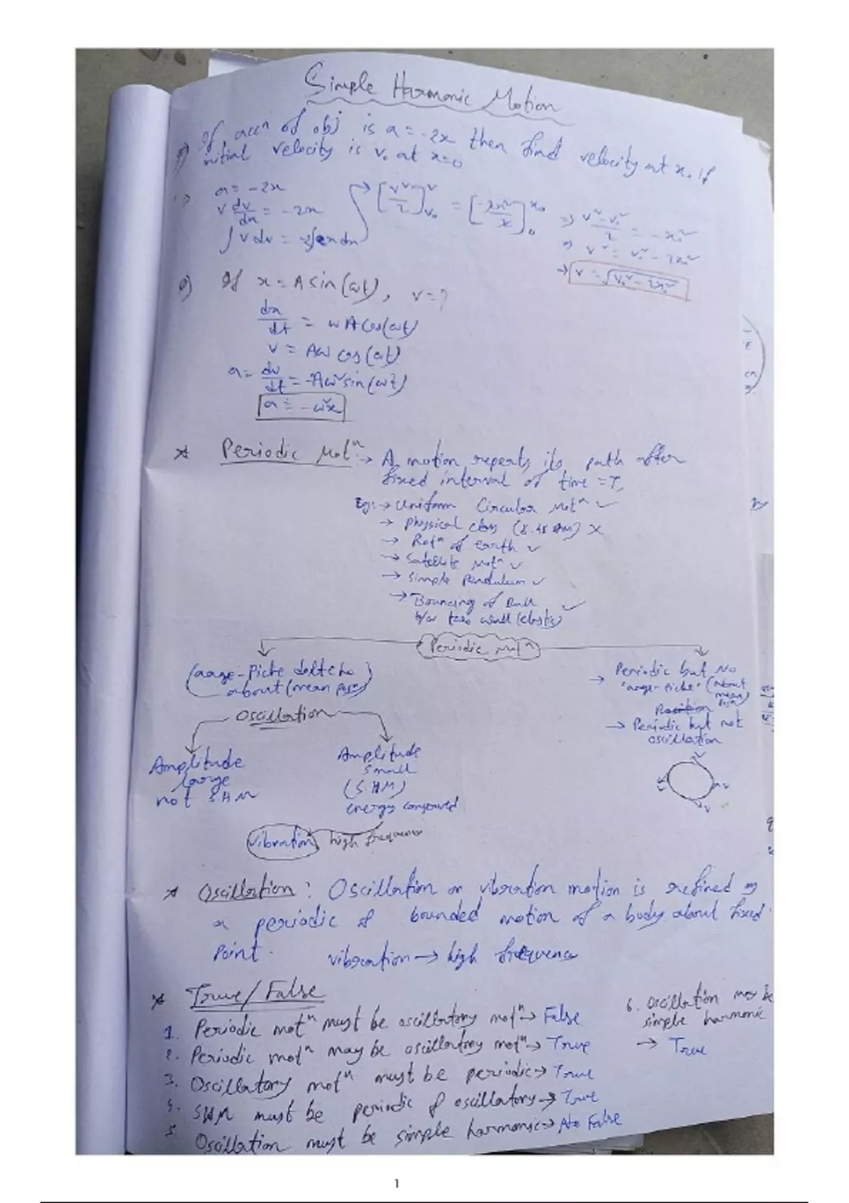 Oscillations (SHM) Handwritten Notes for NEET Physics | Simple Harmonic Motion & Formulas