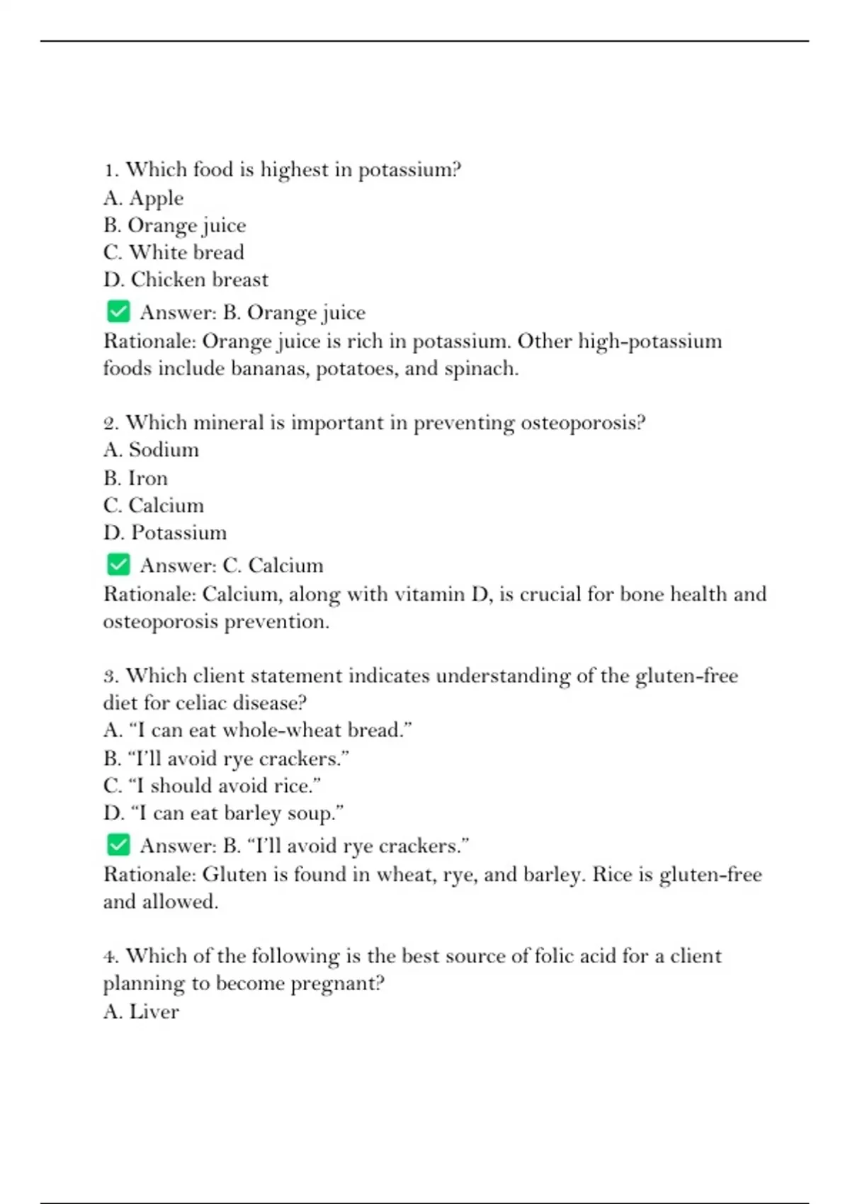 4. Which of the following is the best source of folic acid for a client