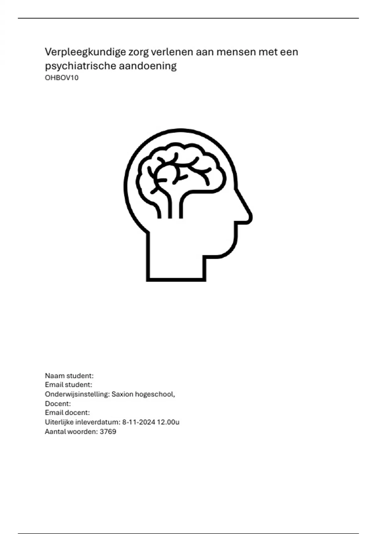 Voor u ligt de casestudy OHBOV10 “verpleegkundige zorg verlenen aan mensen met een