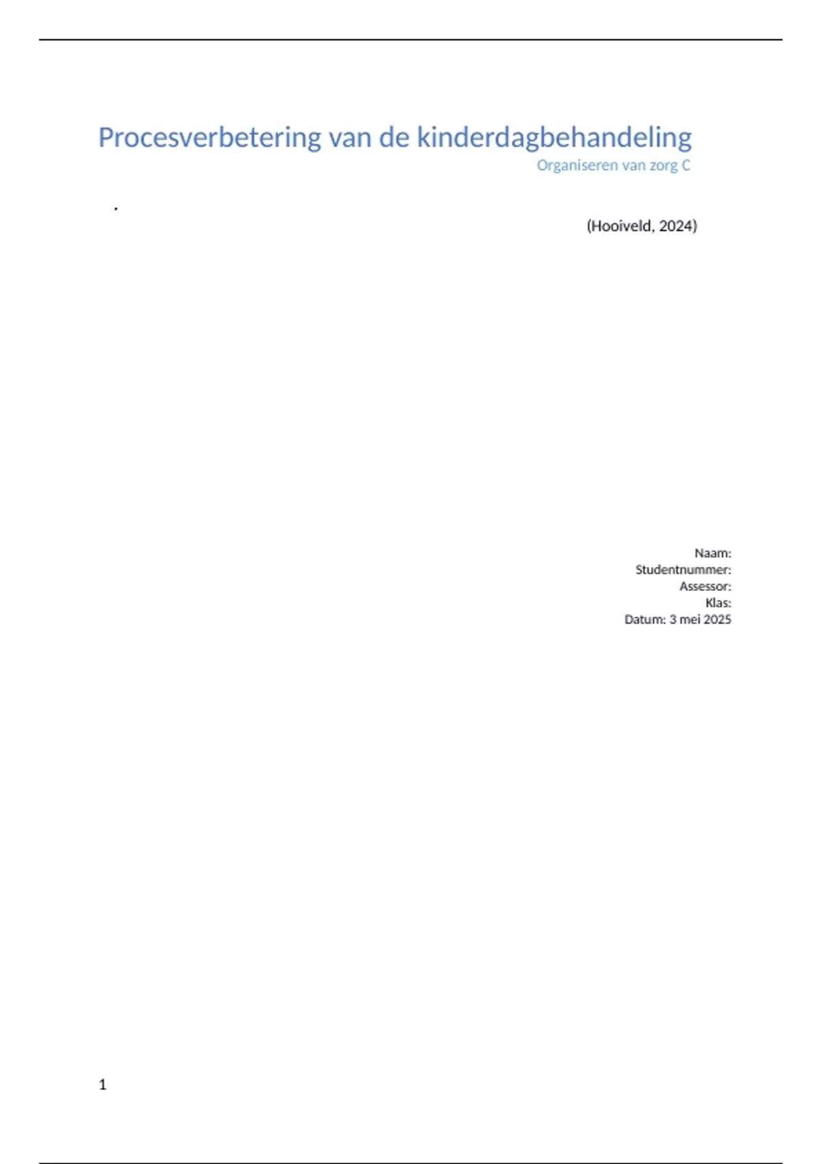 In het kader van dit vak is een knelpunt geanalyseerd dat zich voordoet op de afdeling Kindergeneeskunde van