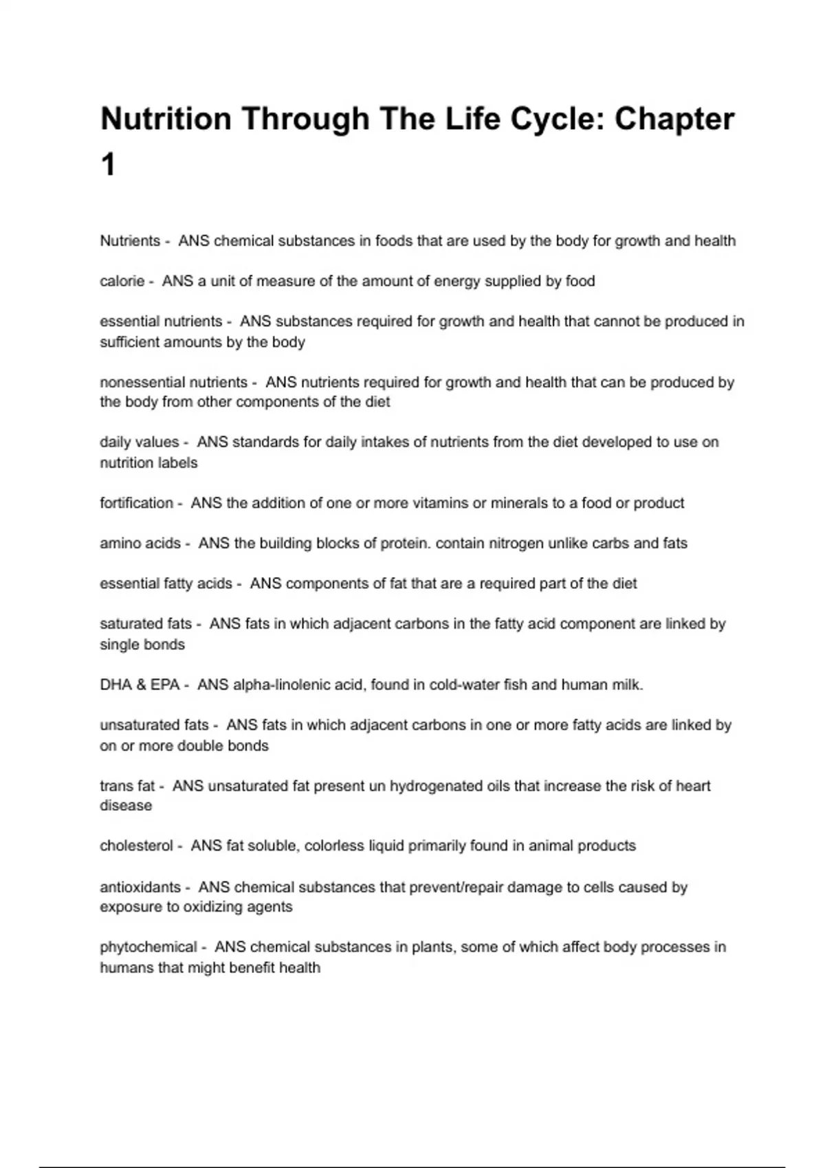 cholesterol - ANS fat soluble, colorless liquid primarily found in animal products