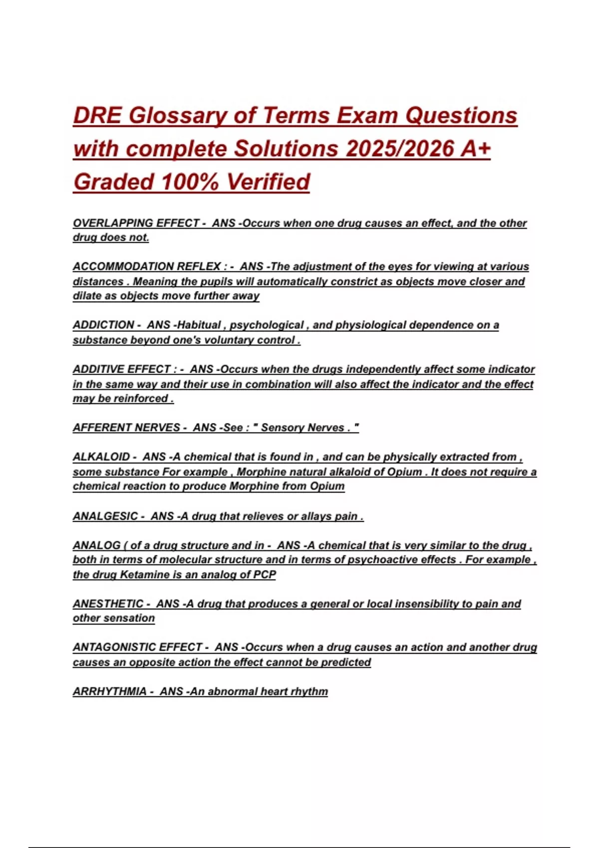 DRE Glossary of Terms Exam Questions