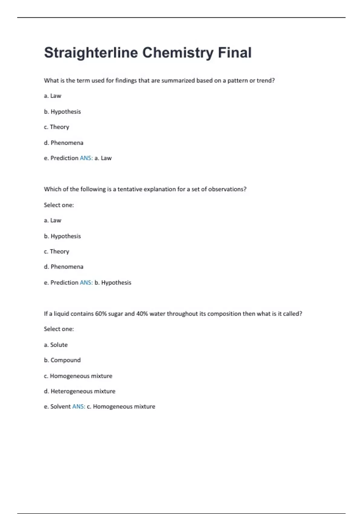Straighterline CHEM101 Final Exam. 314 Questions And Answers Straighterline CHEM101 Final Exam. 314 Questions And Answers Straighterline CHEM101 Final Exam. 314 Questions And Answers