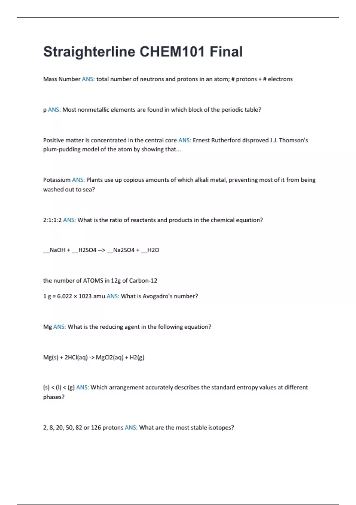 Straighterline CHEM101 Final Exam. 314 Questions And Answers Straighterline CHEM101 Final Exam. 314 Questions And Answers Straighterline CHEM101 Final Exam. 314 Questions And Answers