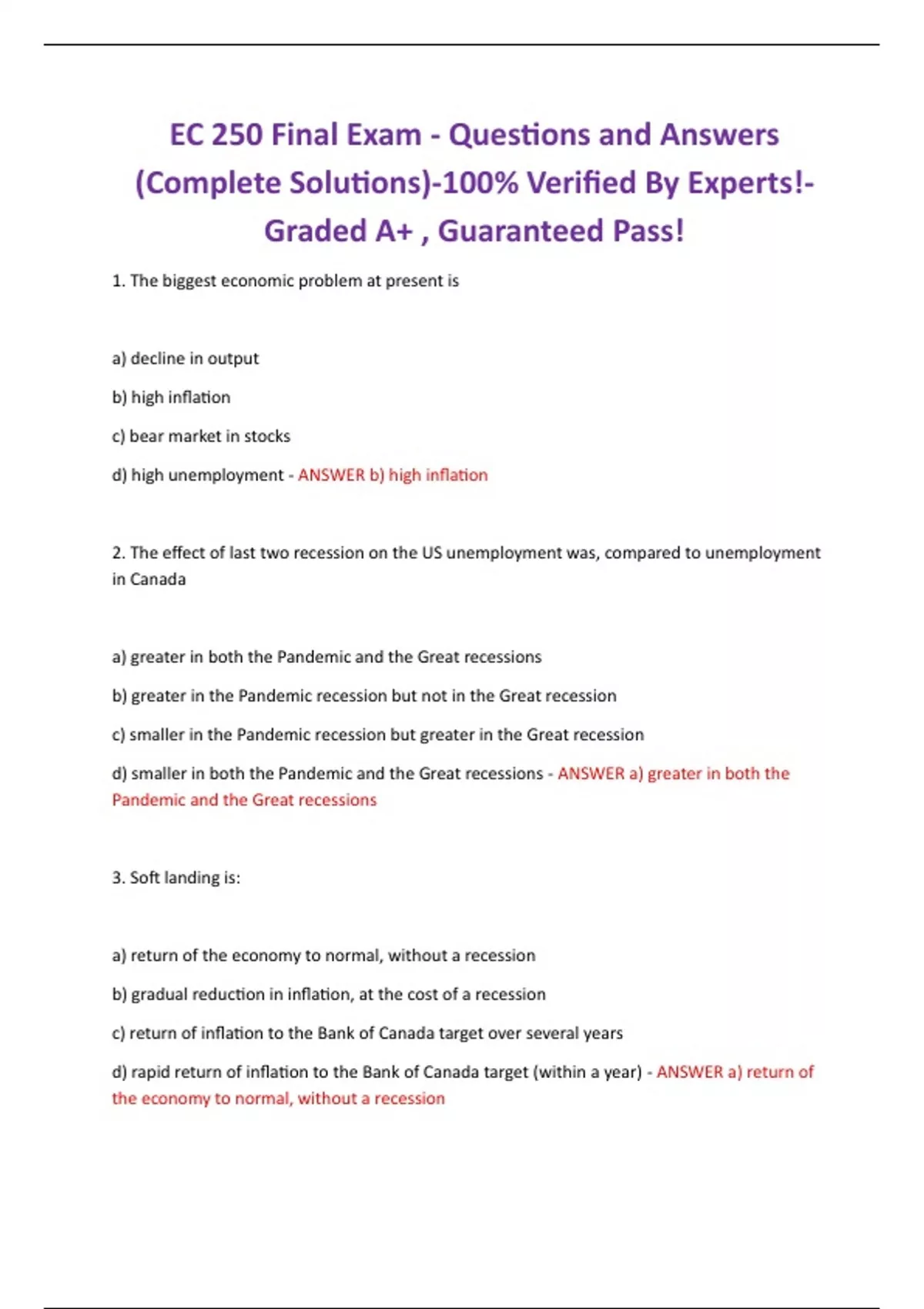 EC 250 Final Exam - Questions and Answers