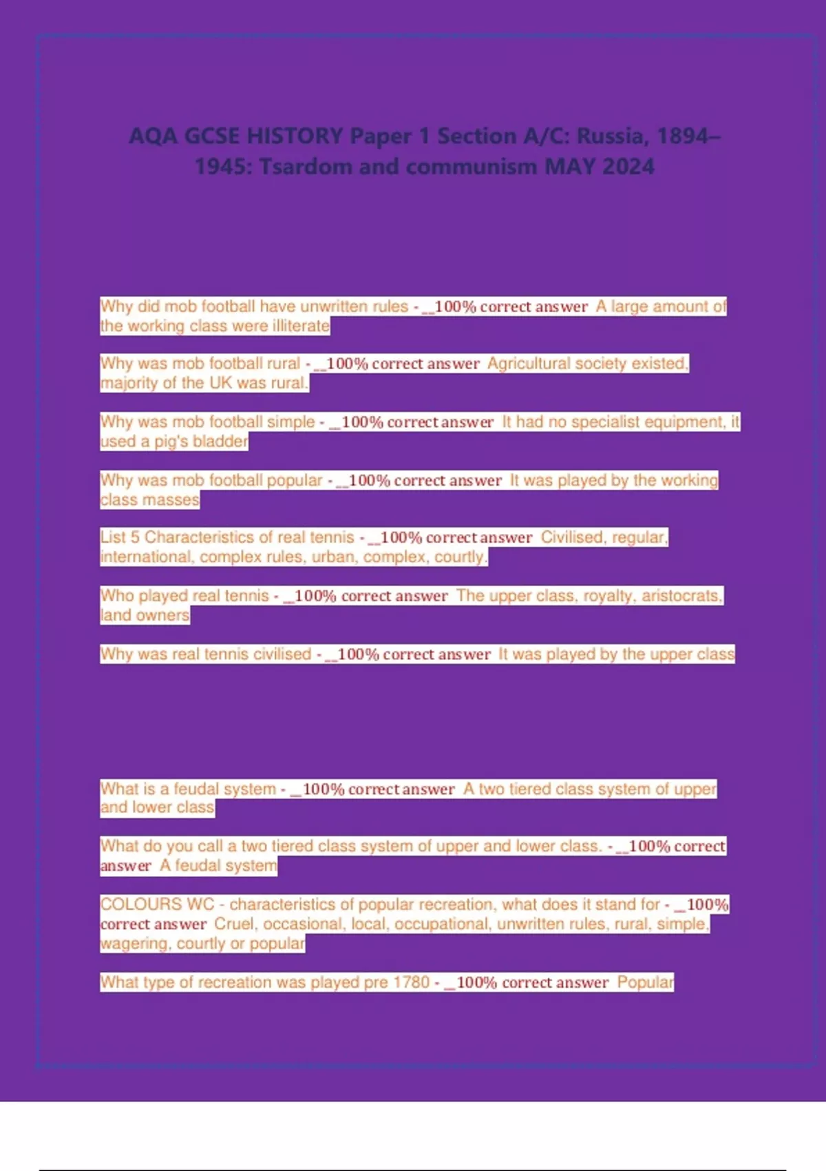 AQA GCSE HISTORY Paper 1 Section A/C: Russia, 1894–