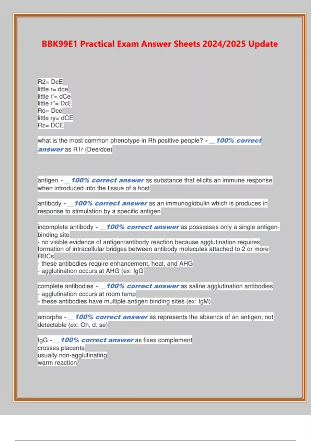 BBK99E1 Practical Exam Answer Sheets 2024/2025 Update