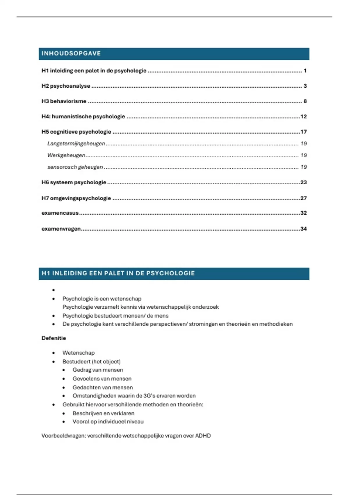H1 inleiding een palet in de psychologie ........................................................................................ 1