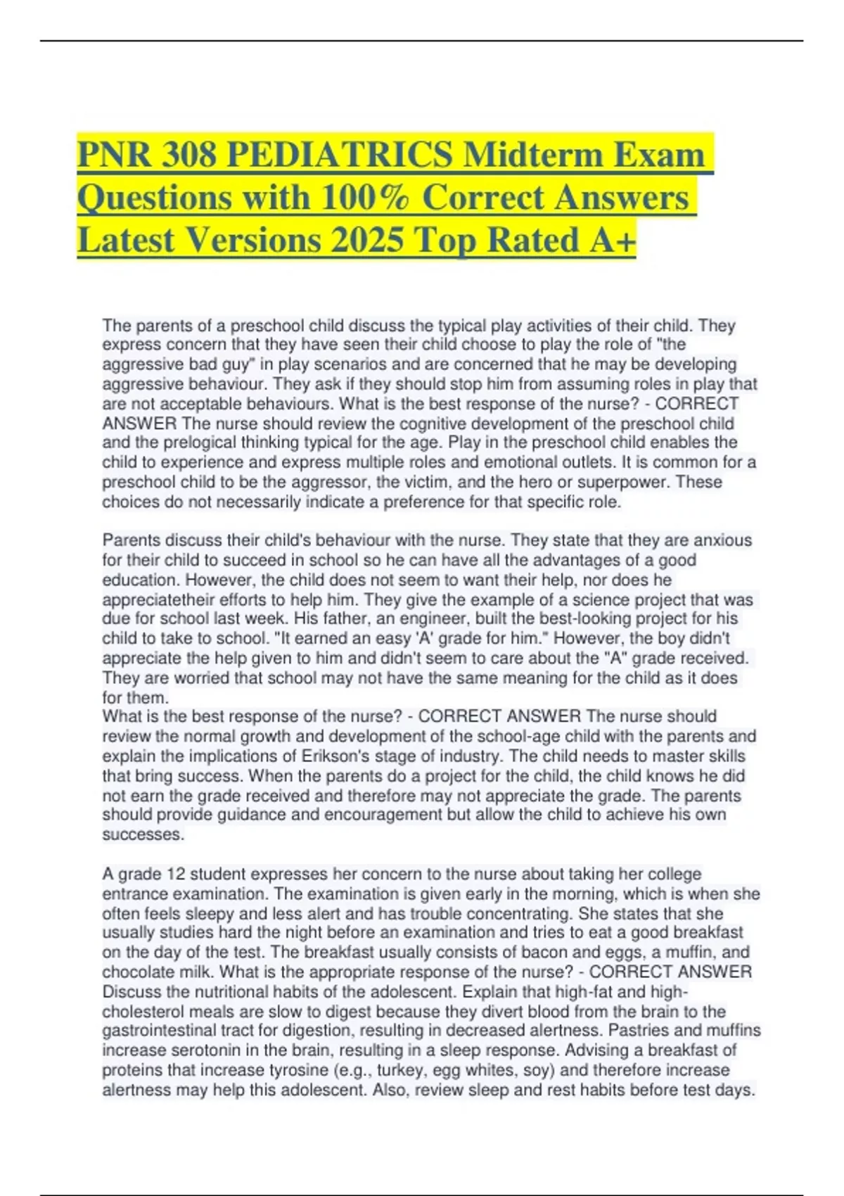 PNR 308 PEDIATRICS Midterm Exam