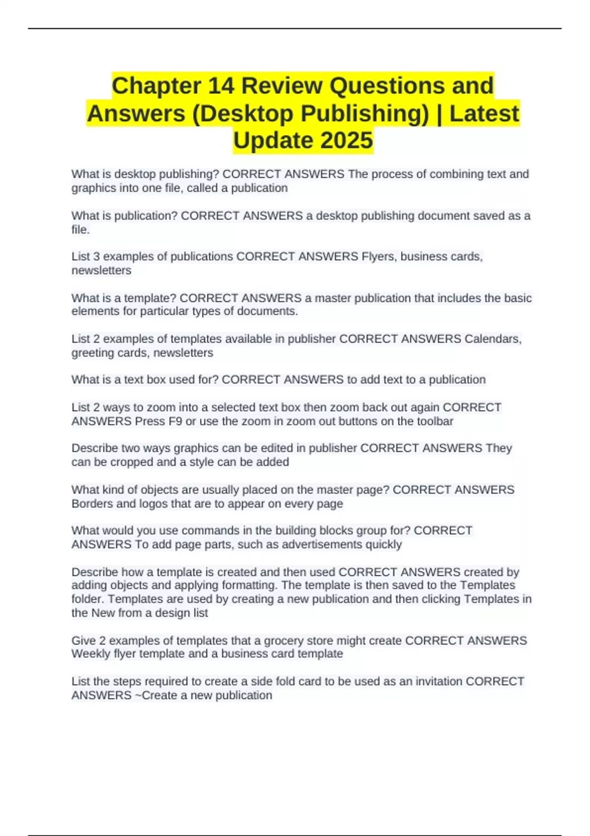 What is publication? CORRECT ANSWERS a desktop publishing document saved as a