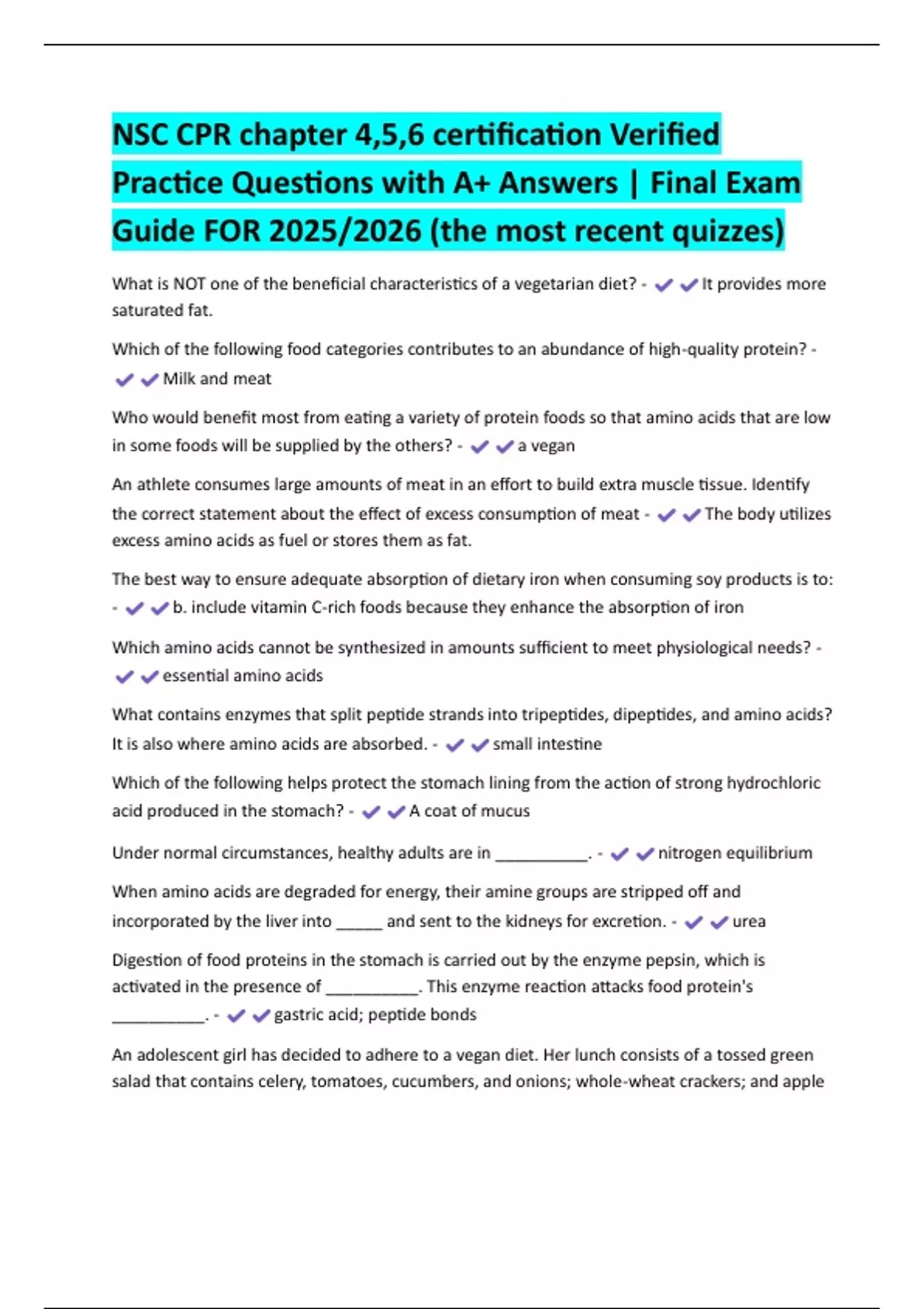 NSC CPR chapter 4,5,6 certification Verified
