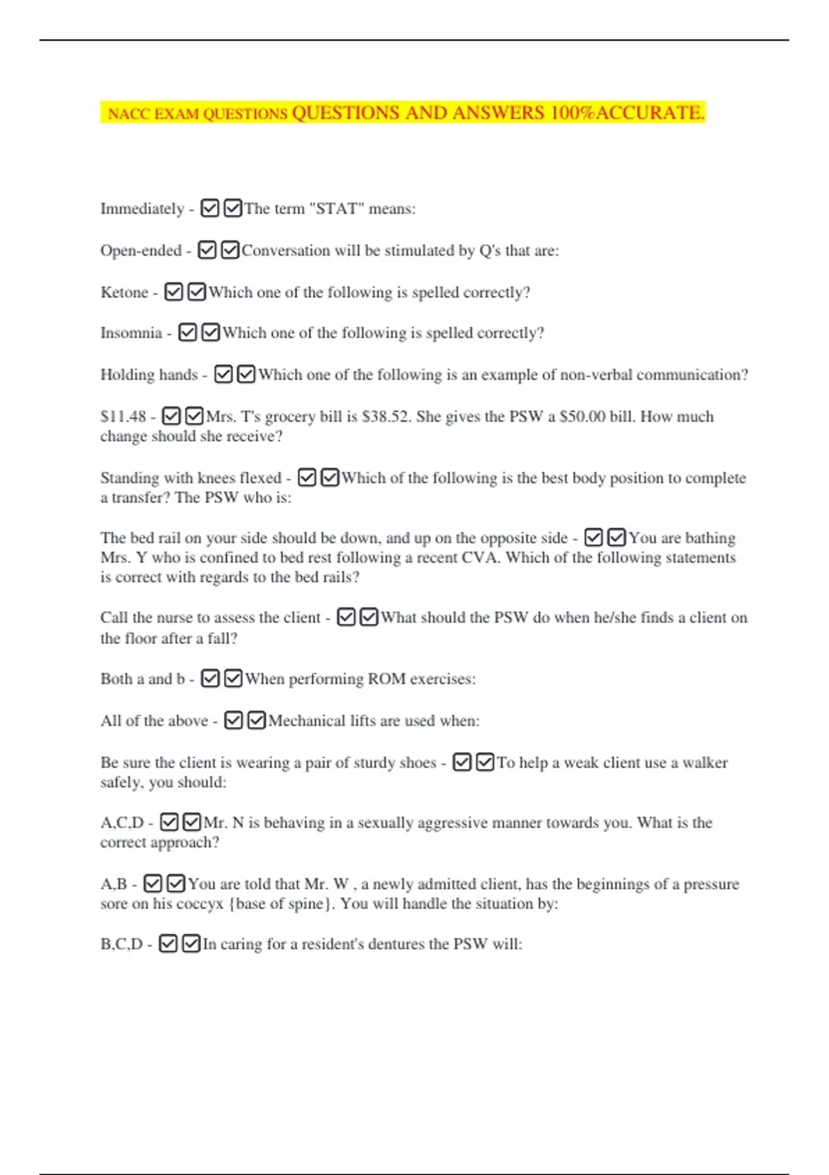 NACC EXAM QUESTIONS QUESTIONS AND ANSWERS 100%ACCURATE.