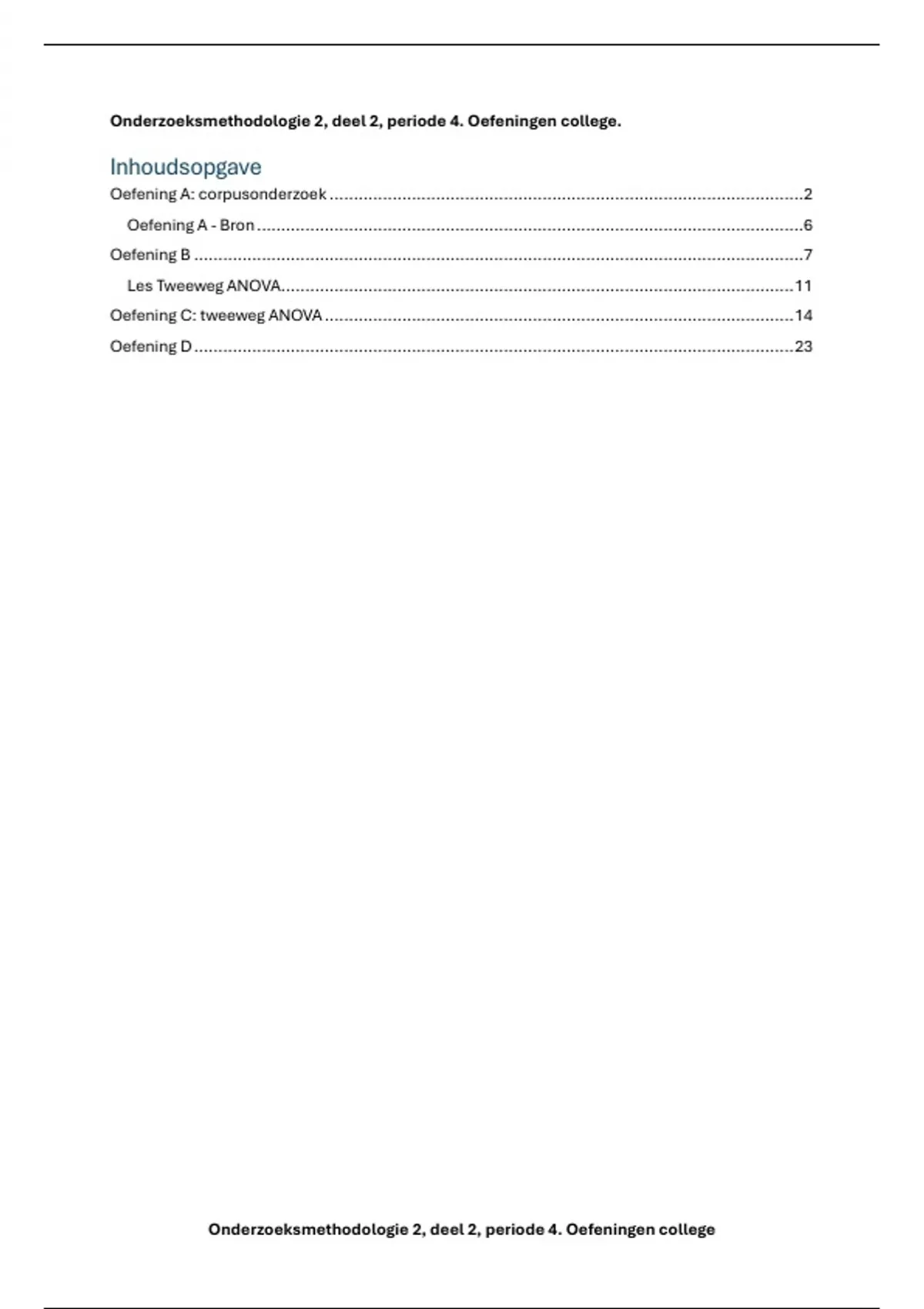 Onderzoeksmethodologie 2, deel 2, periode 4. Oefeningen college.