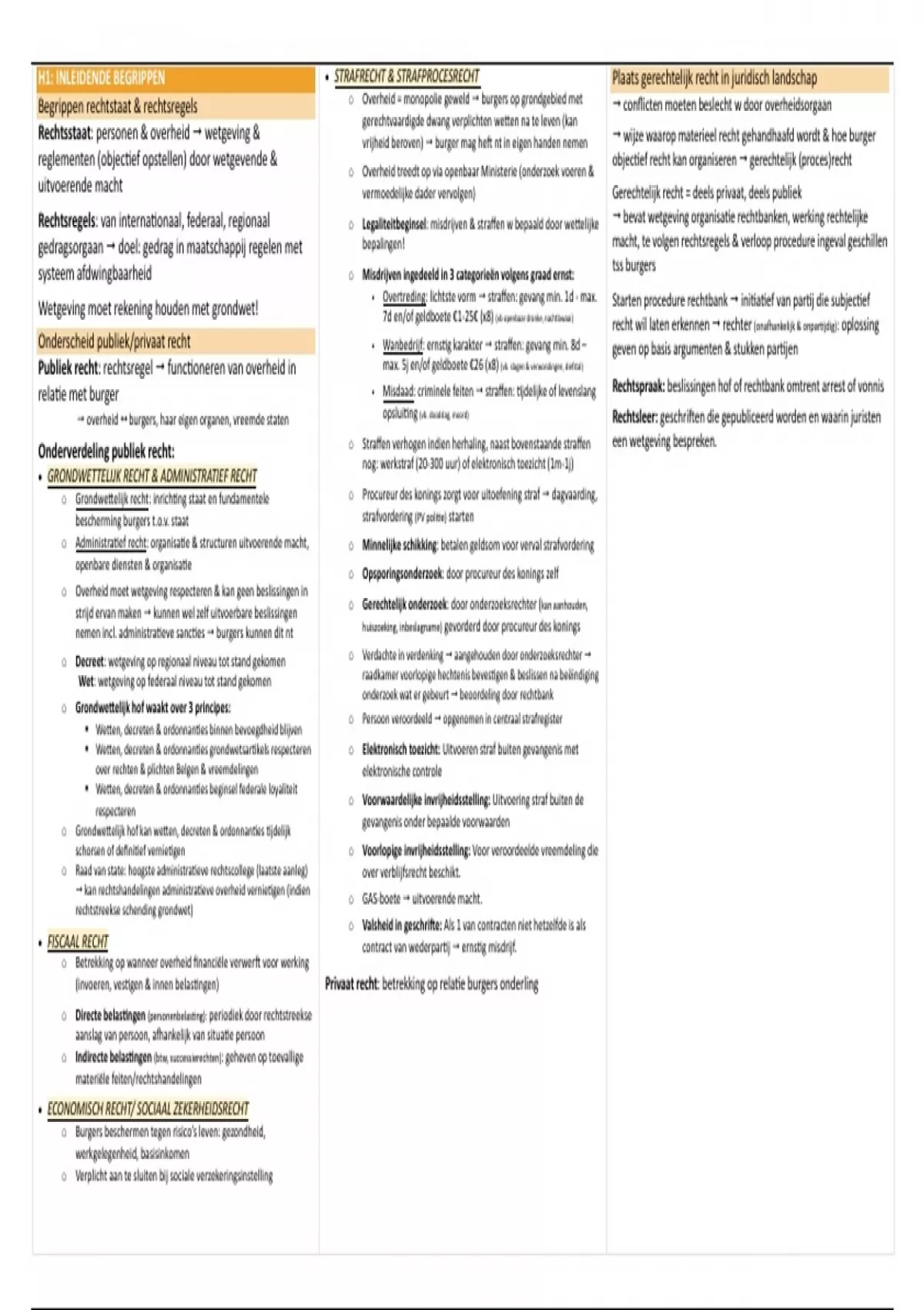 H1: INLEIDENDE BEGRIPPEN • STRAFRECHT & STRAFPROCESRECHT . Plaats gerechtelijk recht in juridisch landschap