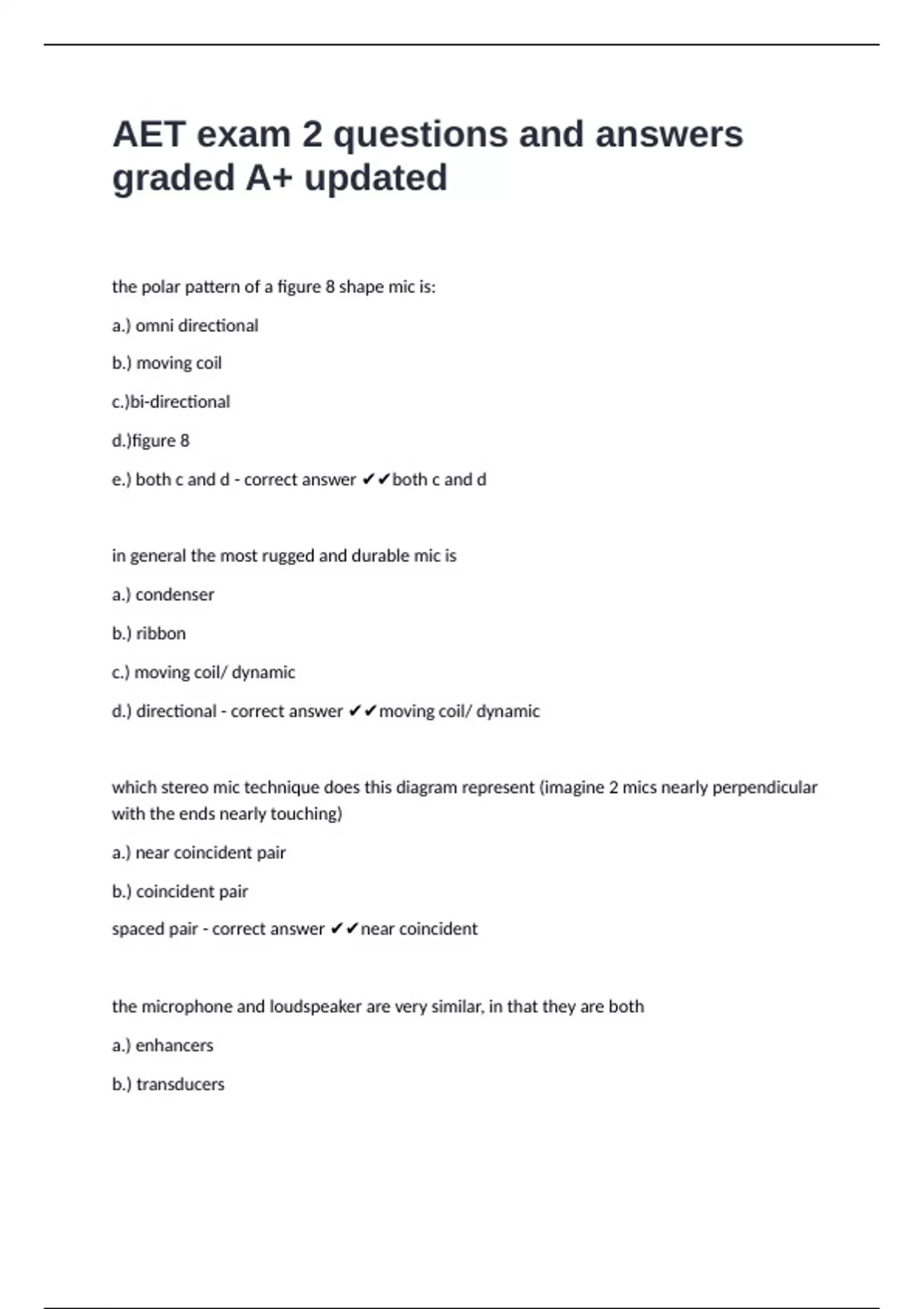 d.) directional - correct answer ✔✔moving coil/ dynamic