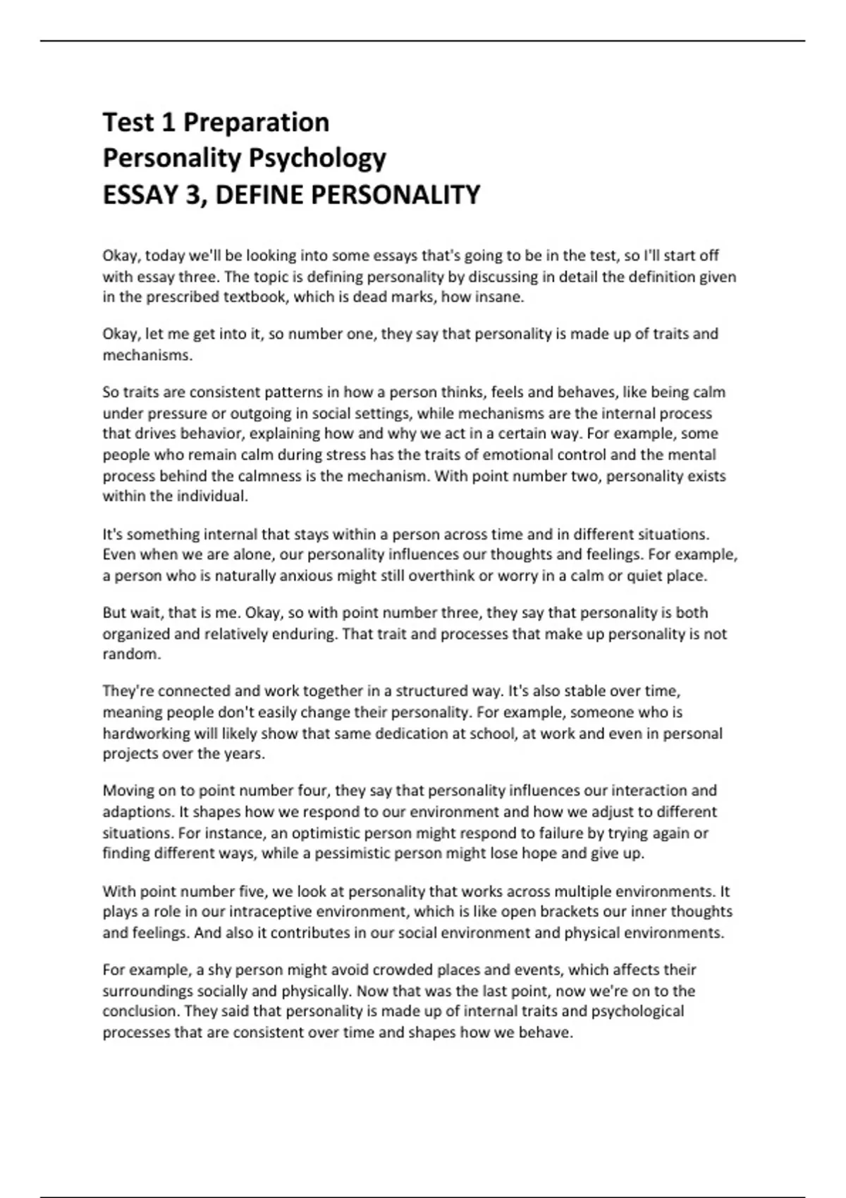 ESSAY 3, DEFINE PERSONALITY