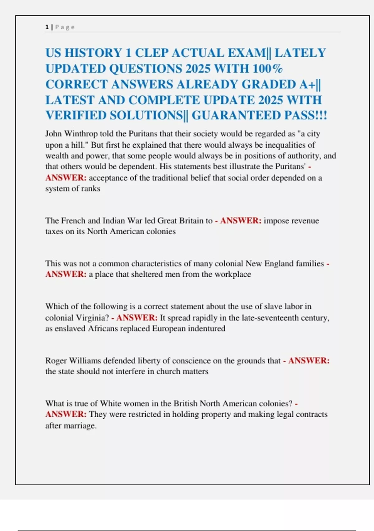 US HISTORY 1 CLEP ACTUAL EXAM|| LATELY