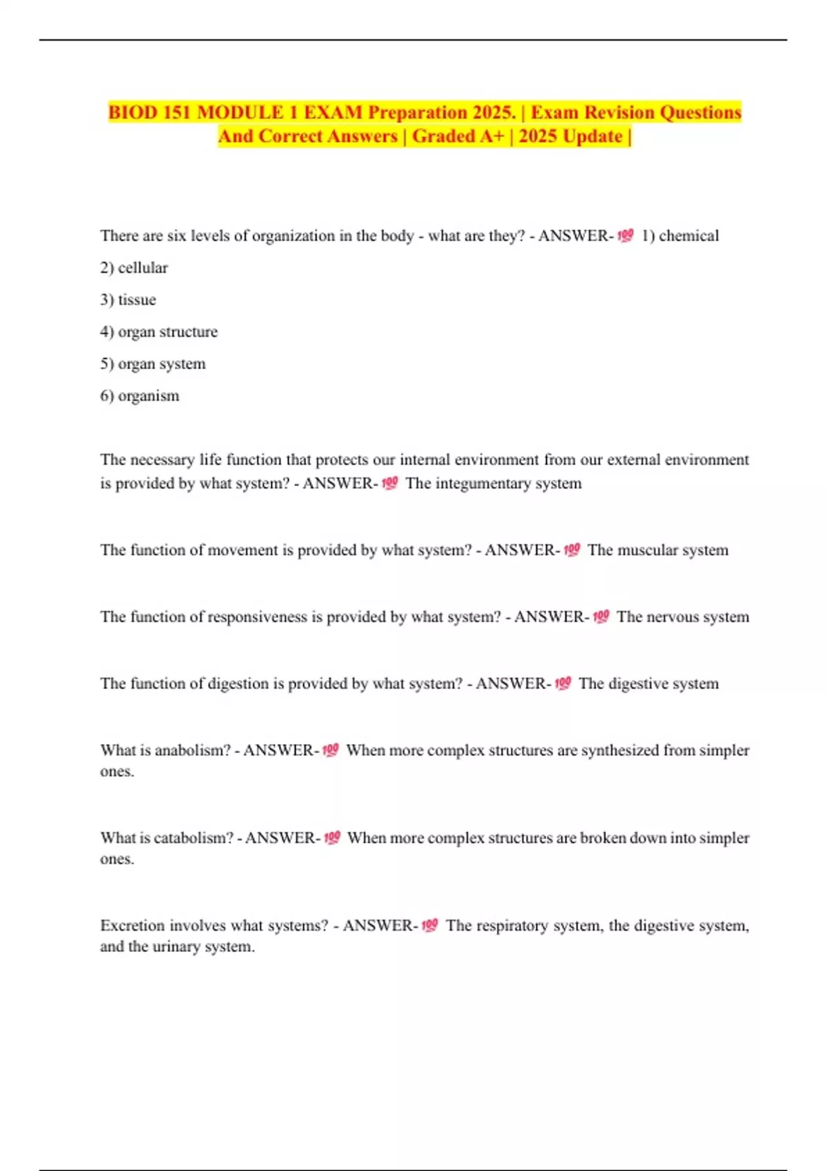 BIOD 151 MODULE 1 EXAM Preparation 2025. | Exam Revision Questions And Correct Answers | Graded A+ | 2025 Update |